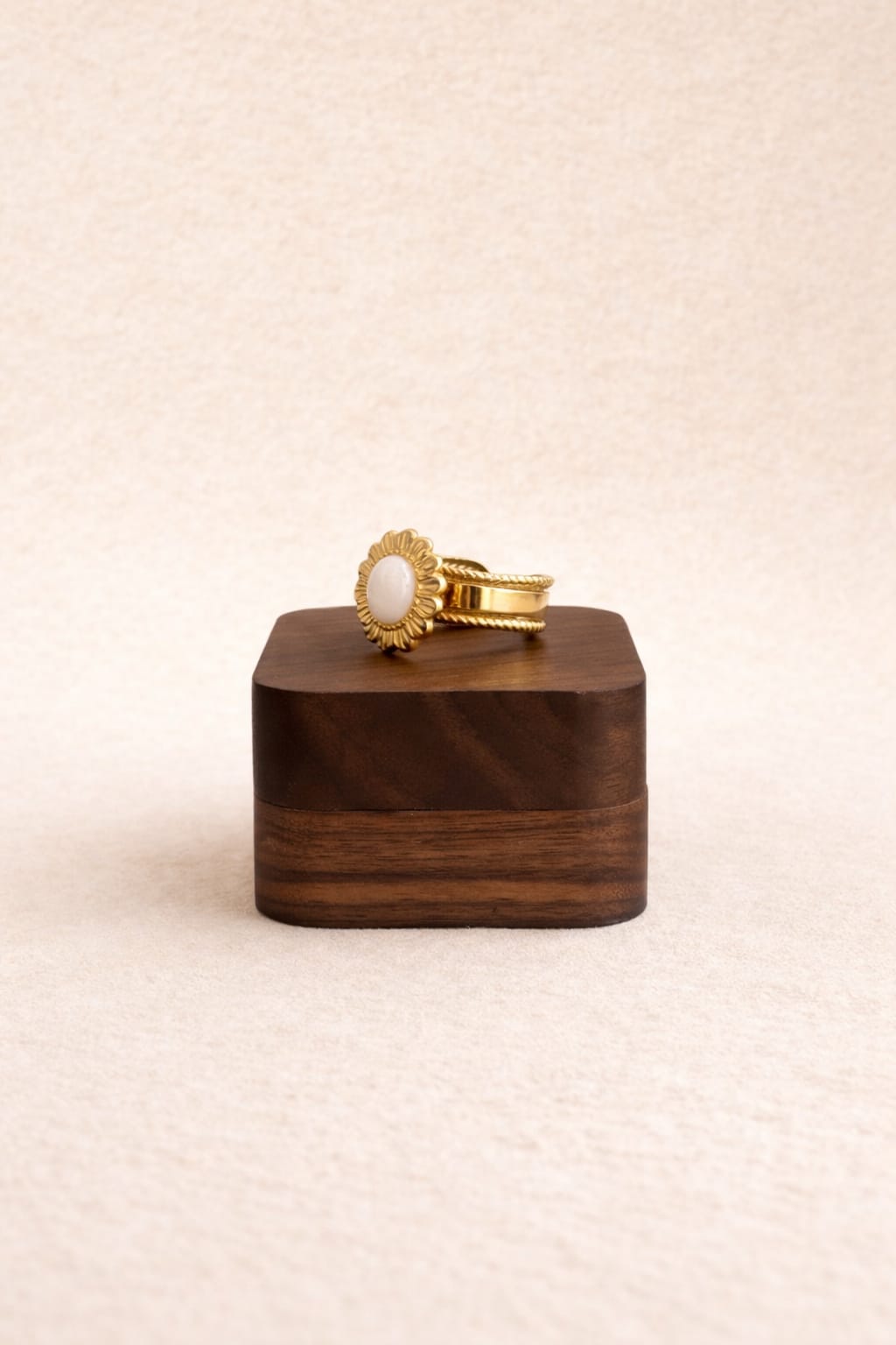 – Ornée d’une pierre blanche entourée de pétales dorées