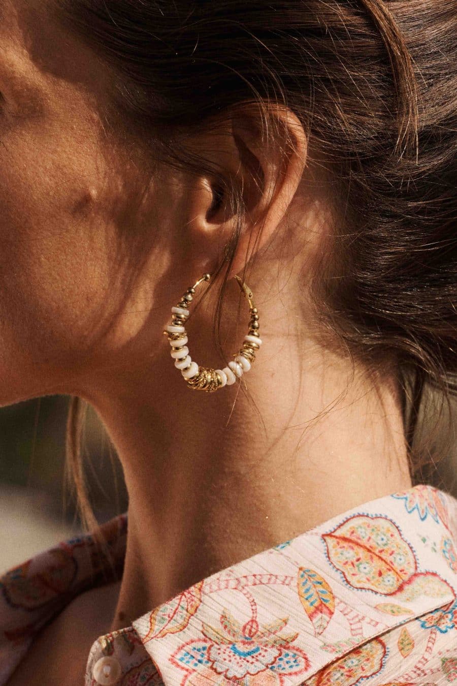 – Couleur : fond écru, imprimé floral multicolore