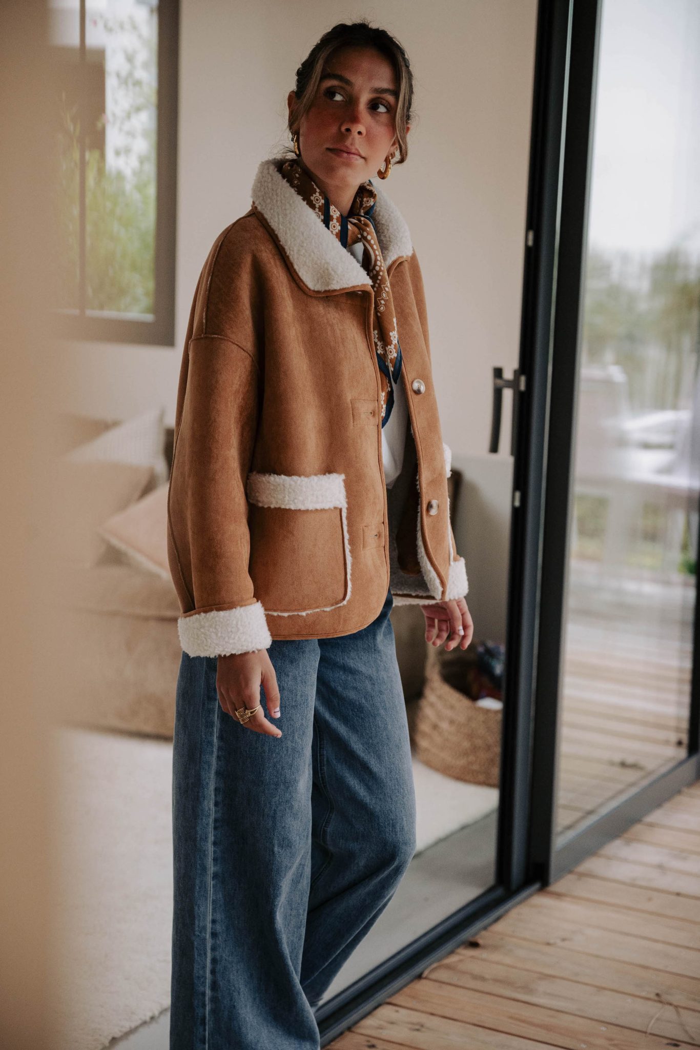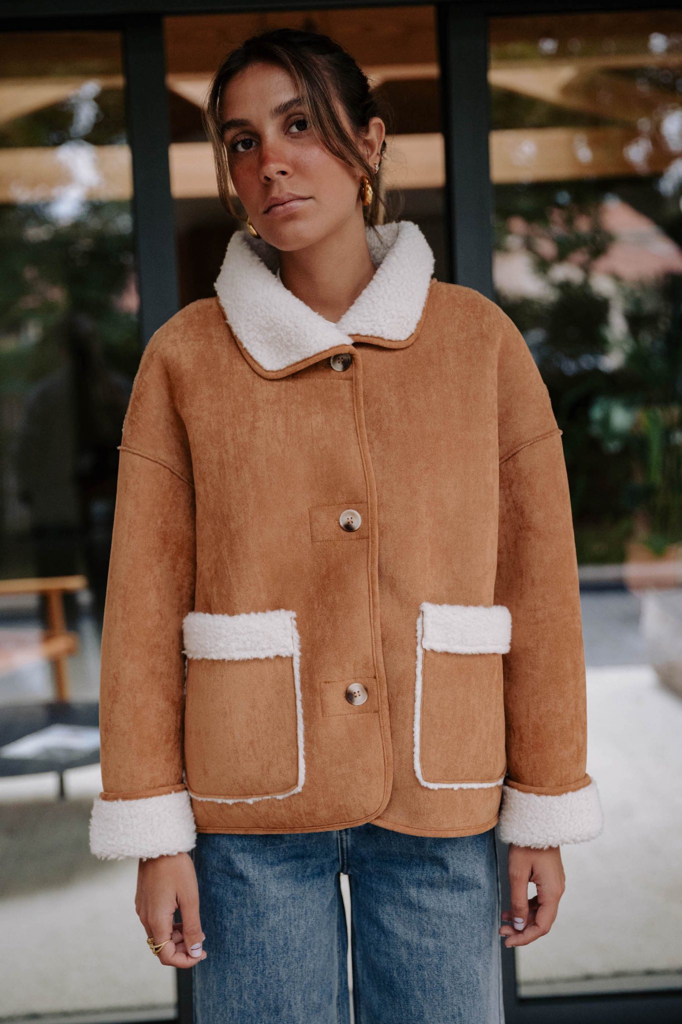 – Côté suédine camel ou côté fausse fourrure crème