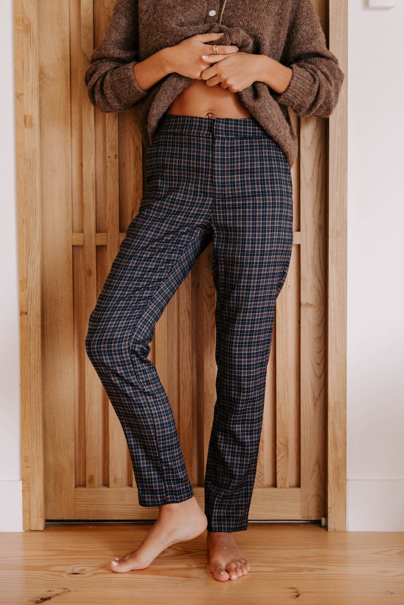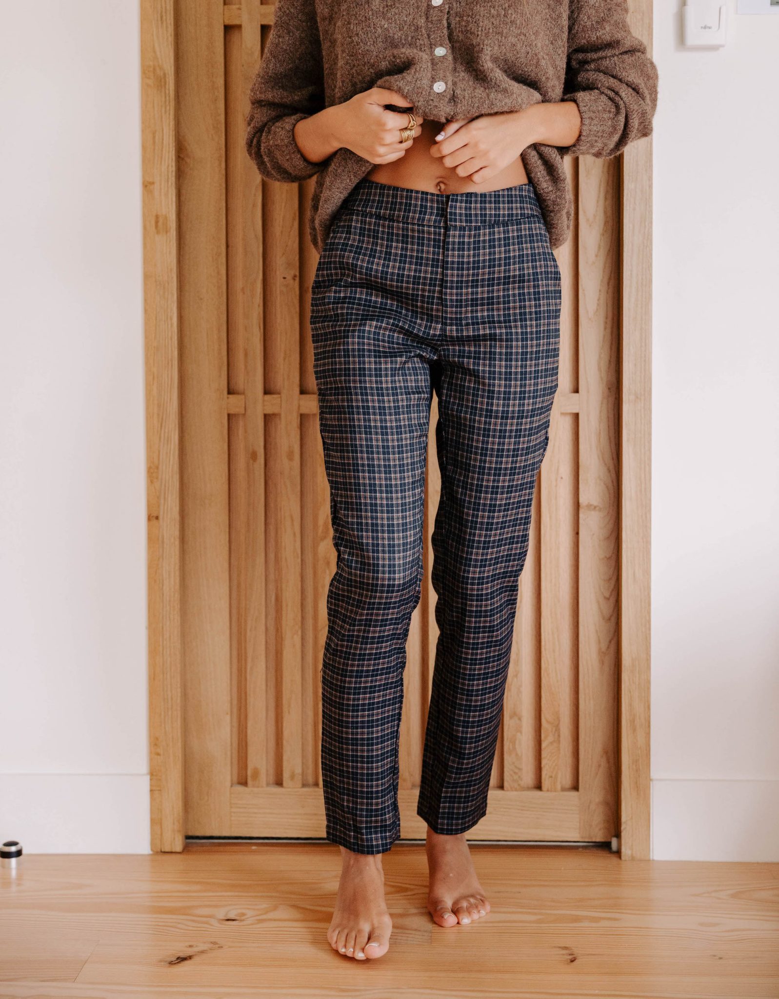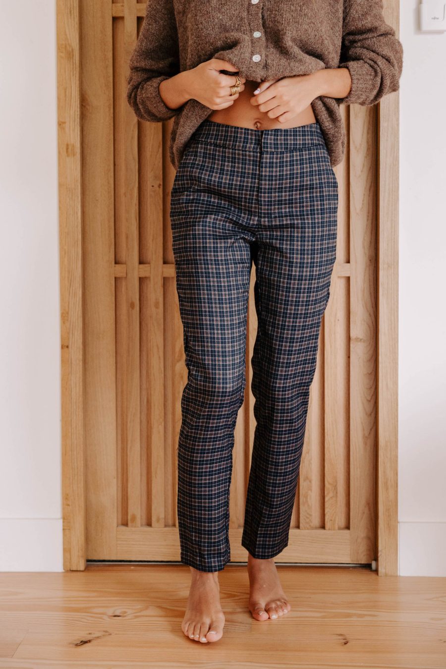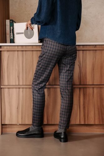 – Couleur : motif à carreaux bleus et marrons